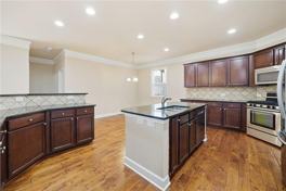 Welcome home to this beautifully appointed 5-bedroom, 4-bath residence in the sought-after gated community of Autry Township. Designed with space and comfort in mind, this home offers a versatile floor plan perfect for everyday living and entertaining. Includes a full daylight basement. Step inside to hardwood floors, a formal dining room, and an open-concept family room that flows seamlessly into the eat-in kitchen. The kitchen is a standout, featuring a large center island, abundant cabinetry, granite countertops, and stainless-steel appliances. Just off the family room, enjoy one of two covered balconies, ideal for relaxing or outdoor dining. Upstairs, you will find the primary suite, laundry room, and three additional bedrooms. The expansive primary suite impresses with French door entry, a private covered balcony, a spacious sitting area, and a luxurious en-suite bath. All bathrooms throughout the home have been renovated and upgraded. Secondary bedrooms are generously sized and filled with natural light. Lawn maintenance is included and handled by the HOA, making for easy, low-maintenance living. Conveniently located just minutes from North Point Mall, Ameris Bank Amphitheatre, premier shopping, dining, and entertainment, this home offers the best of comfort and convenience in Johns Creek.