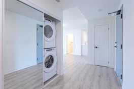 The unit is equipped with brand new appliances, including a dishwasher, washer, and dryer, making cooking and laundry tasks a breeze. The primary bedroom serves as a true retreat, offering ample space and a walk-in closet for easy wardrobe organization. The ensuite bathroom in the primary bedroom is a private oasis with modern fixtures and a soothing ambiance.