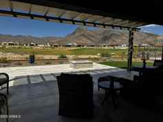 Beaty awaits in Victory Adult Verrado Community. Enjoy this furnished 2 bedroom 2 bath home with office/den. Enter Property to spectacular golf/mountain view. Front bedroom with separate guest bath. Den/office with glass doors for extra privacy. Open kitchen with large island, granite counters, walk in pantry, stainless appliances. Gas cooktop for the Gourmet chef! Eat in kitchen nook off kitchen & great room. Can't beat the view from patio, large extended patio, gas firepit, and synthetic turn. Large Primary suite with views. Large primary shower, dual vanities and walk in closet. 2 car garage with extended golf cart garage. Furniture can be included or removed. Victory does require 1 year lease. kitchen table will be changed out.