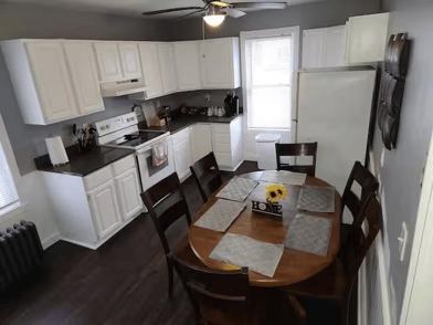 Escape to this charming and spacious rental unit, where modern comfort meets classic style. Step inside to discover a place bathed in natural light, with beautiful hardwood floors that guide you through a welcoming, open layout. The heart of the home is a fully equipped kitchen, featuring bright white cabinetry and sleek black countertops, perfect for whipping up your favorite meals. A dedicated dining area is right there, making it easy to share a home-cooked meal. Relax and unwind in the cozy living room, a perfect spot to read a book or stream your favorite show. When it’s time to call it a night, you'll find three unique bedrooms waiting. The Front Bedroom is a sun-filled retreat with multiple large windows, while the Middle Bedroom offers a quiet, relaxing ambiance. The Back Bedroom provides a peaceful haven, complete with its own private door. A clean, central bathroom ensures everyone can get ready for the day with ease. For your convenience, you'll also have in-unit laundry and dedicated off-street parking for 2 cars. SECTION 8 ACCEPTED! This is a great unit in a convenient location, ready for you to move in. There is a non-refundable $49 fee per applicant for a background and credit check. Cat OK with $50/M fee. No Dogs. Currently used as an AirBnB.