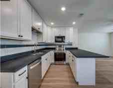 Completely Renovated 2-Bedroom Half Duplex – Move-In Ready. This beautifully updated 2-bedroom, 1-bath home features brand-new luxury vinyl plank flooring, fresh interior paint, and new windows that bring in abundant natural light. The fully remodeled kitchen offers soft-close cabinetry, updated countertops, a stylish backsplash, and newer appliances including range, microwave, and dishwasher. A peninsula provides additional counter space and opens to the living area, creating a functional and inviting layout. The bathroom has been fully renovated with modern tile, a new vanity, bathtub, toilet, and updated fixtures. Both bedrooms are spacious and offer generous closet space. Rear access provides a dedicated parking pad for convenient off-street parking. Washer, dryer, and refrigerator are included, along with yard care. A clean, updated, turnkey property ready for immediate move-in.