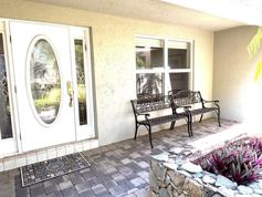 This lovely one-story home on a private lot offers 4 bedrooms & 2 1/2 baths and is nicely remodeled. Features include porcelain tile & luxury vinyl flooring;vaulted ceilings;a charming sunken Living Room with twin-sided fireplace to the Family Room with stone to the ceiling; island kitchen with white cabinetry; granite counters with island waterfall edge, stainless steel appliances and extra high-hat lighting. All bedrooms have custom-configured closets. The bathrooms have been remodeled and the primary offers marble flooring. Hurricane protection includes impact windows & doors an accordion shutters, portable 9000 watt generator. The outdoor space offers silver travertine pavers, a covered lanai with a summer kitchen with refrigerator, screened patio with a pool & grassy area beyond.