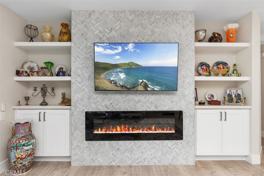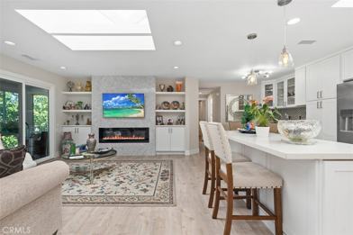 GORGEOUS home in the premier community of Laguna Woods Village has been completely remodeled. No expense spared for this Casa Linda floor plan. There are no stairs leading from the nearby carport and no residences above the unit. The home only shares one common wall with neighbors offering additional privacy. Newer flooring throughout with tasteful tile/stone work within the bathrooms. There are quartz counters, stainless steel appliances and newer cabinetry in both the kitchen and bathrooms. Custom built-in entertainment center includes an electric fireplace, a flat screen TV to rest above and bookshelves with cabinets on either side. The master bedroom includes a walk-in closet, a master bathroom with a generously sized shower. The home includes a washer/dryer, 3 newer skylights, newer solar tubes, recessed lights and a newer central cooling and heating system. There is a private enclosed balcony with porcelain tiling overlooking the neighborhood. Laguna Woods Village is a thriving community with many activities to enrich your lifestyle! Living here is like belonging to a country club.