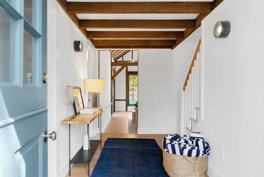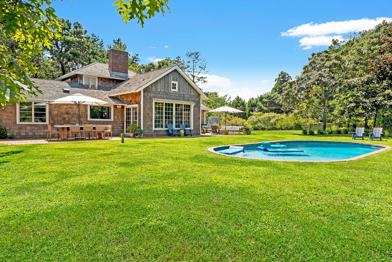 Rental Registry #23-1242 Located in Beach Hampton, Amagansett Dunes on a spacious 0.74+- acre parcel, this very special traditional cedar residence features 4 bedrooms and 3.5 bathrooms across 2,500+- sf of living space. Thoroughly renovated in 2022 with a professional kitchen, stunning marble bathrooms, and new hardwood flooring, the heart of the home is an expansive central living/dining room with a soaring vaulted, exposed-beam ceiling and brick fireplace. Fully open to the sparkling new kitchen, it is flooded with light from a wall of paned windows and sliding doors that lead to the back grounds and pool. A primary ensuite with an original refinished wood-burning masonry fireplace, 3 spacious guest bedrooms, a denTV room, and a dedicated laundry room with a utility sink complete the interior. A large brick patio perfect for dining, lounging, or entertaining overlooks the pool which backs up to mature plantings. With a private Atlantic Ocean beach entrance only one block away, this South of the Highway location also includes beach rights. Beach Hampton is a uniquely magical community of homes set amidst the natural beauty of the dunes and the vastness of the Atlantic Ocean. Great holiday get away, two weeks $30k.