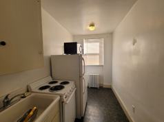 Both the bedroom and the living room have hardwood floors. The galley style kitchen has a frost free refrigerator and an apt. size electric stove. The bath has a shower-no tub. There is a coin op laundry available in the common basement. The building has continuously circulating hot water. No dogs. Heat and water paid by the owner. Some off street parking available on a first come basis. Public transportation is readily available