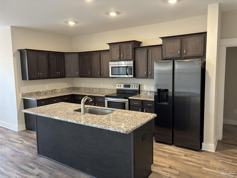 Beautiful 3 Bedroom Home with Modern Finishes Conveniently located near schools and shopping, this 3 bedroom, 2.5 bathroom home offers a convenient split floorplan with high ceilings throughout. The spacious kitchen is fully equipped with granite countertops, stainless steel appliances, and a large island with bar seating. It overlooks the large living room, creating an open floor plan perfect for entertaining. The master suite includes a double vanity, oversized walk-in closet, and walk-in shower. Additional highlights include an inside laundry room, a two-car garage, and carpet in the bedrooms for added comfort. Enjoy the fenced backyard with a covered patio—great for relaxing or outdoor gatherings. Small pet considered with owner approval.
