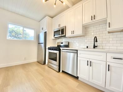 Quartz countertops, new shaker cabinetry.