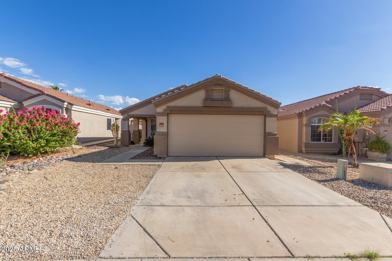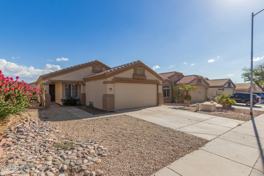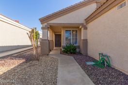 Tucked inside a GATED community, this charming 3-bed, 2-bath home offers comfort, style, and convenience.*THIS HOME ALSO HAS SOLAR - SAVE $$$ ON YOUR ELECTRIC BILL. Freshly painted and cleaned - Ready for move-in. A bright great room with vaulted ceilings, kitchen features plenty of cabinets and refrigerator included, plus a sliding doors to the backyard. The primary suite boasts a walk-in closet and en-suite bath, while secondary bedrooms are cozy and share a hall bathroom. Outdoors, enjoy low-maintenance backyard. Community perks include greenbelts, playgrounds, and a nearby park. Minutes from Bell Rd, Arrowhead Towne Center, and major freeways.