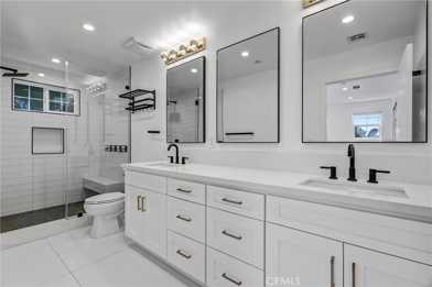 Welcome to this stunning new-construction Mediterranean home in the heart of Sherman Oaks. Built in 2023, the spacious open-concept main level offers a formal dining room with a charming balcony, a bright and inviting living room, a convenient half bath, and a chef’s kitchen featuring stainless steel appliances and a breakfast bar. Upstairs, you’ll find three generously sized bedrooms, two full bathrooms, and a dedicated laundry area with brand new LG washer and dryer. The luxurious primary suite is a true retreat, showcasing a spa-inspired bathroom with a double vanity and rainfall shower. The backyard is designed for entertaining, featuring a low-maintenance artificial turf yard and a fully equipped outdoor kitchen. Additional highlights include a main-level bedroom with its own ensuite bath and walk-in closet, a two-car garage, and a gated shared driveway. Ideally located just moments from Ventura Boulevard’s dining, shopping, and top-rated schools, this home offers the perfect blend of style, comfort, and convenience.