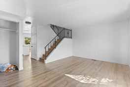 Freshly updated, townhome-style layout across three levels: the main floor features living, kitchen, and a half bath; upstairs offers two bedrooms and two bathrooms, including a primary suite with its own balcony; the finished basement adds a conforming bedroom, an additional bathroom, extra living space, and laundry. Water is included; residents cover the remaining utilities.