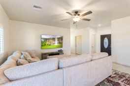 Gorgeous custom built sitting on over 3 acres with amazing views that you can enjoy on a huge patio. Step inside the 3 bedroom and 2 bathroom home with the open concept living, dining and kitchen space. Bonus with a separate GREAT ROOM and furnished! Tile floors throughout the living areas and carpet in the bedrooms. Spacious laundry room inside. 3 garage space allows for all the covered and protected parking and storage you need.