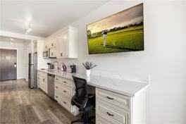 Welcome to this fully furnished and beautifully remodeled studio, located in the heart of Lake Las Vegas. This stylish retreat offers modern finishes, comfort, and convenience, all while overlooking breathtaking lake views from your private balcony. Inside, the open layout has been thoughtfully updated with luxury vinyl flooring and custom cabinetry throughout. The sleek kitchen features a full-size refrigerator, cooktop, quartz countertops, and plenty of storage, making it both functional and elegant. A designated desk area provides the perfect spot for remote work or study, seamlessly blending productivity with relaxation. This unit comes fully furnished with all new, modern pieces, allowing you to move in and enjoy right away. From the cozy living and sleeping area, every detail has been designed with comfort in mind. Utilites, internet and satellite TV included! You’ll enjoy serene surroundings, walking trails, dining, and entertainment just moments away.