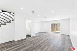 For rent this brand new 2BR townhome in the middle of the four-unit building complex, completed in 2024, with an open living and dining area defined by large windows that bring in plenty of daylight. The kitchen features a quartz waterfall island, stainless-steel appliances, and a simple subway-tile backsplash. The primary bedroom includes an en-suite bathroom with a dual sink and a glass shower over the bathtub, and a walk-in closet. The two additional bedrooms share a full bathroom. A powder room on the main level adds convenience, and throughout the home, you'll find luxury vinyl plank floors, central air, and an in-unit washer and dryer. Parking is in a secure, gated garage, and this home comes with 2 assigned garage spaces. Located on Sherman Way in Van Nuys, near local cafes, shops, and parks with playgrounds. Close to Louise Park and Jesse Owens Park.