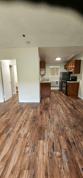 An upgraded kitchen with new cabinets and Quartz countertops, and a new stove/oven.