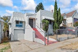 Welcome to 2617 78th Ave, a charming residence nestled in the heart of Oakland, CA. This inviting home boasts a distinctive exterior with a unique façade and a welcoming red staircase leading to the main entrance. Inside, the living area is bright and airy, featuring large windows that allow natural light to flood the space, highlighting the elegant flooring and a cozy fireplace that adds warmth and character to the room. The open layout seamlessly connects the living area to a modern kitchen equipped with sleek countertops, ample cabinetry, and stainless steel appliances, making it ideal for both everyday living and entertaining.