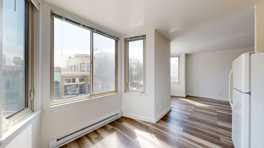 The building provides shared laundry facilities, and small pets are welcome. Reserved parking is available for an additional $350 per month.