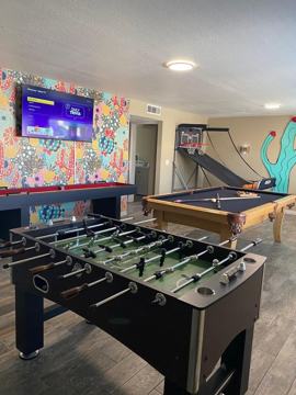 Spacious and fun-filled, this vacation rental offers everything you need for a relaxing getaway! Enjoy a cozy living room with a Smart TV and sofa sleeper, a fully stocked kitchen, and a dining area for six. The four bedrooms provide ample space, including a king suite with backyard access. Unwind in the game room with a pool table, foosball, and more! Step outside to a private backyard with a pool, fire pit, and covered patio. Convenient parking available. Book now for a memorable stay! LIVING ROOM >Smart TV (login to own streaming apps) >Comfortable couch seating >Tan couch is a sofa sleeper >Board games! DINING ROOM >Seats 6 people KITCHEN >Fully stocked (pots/pans/utensils) >Open concept to living/dining area >12 cup coffee maker + Keurig coffee maker BEDROOMS >Bedroom 1: King bed, work desk, Smart TV, walk in closet, slider to backyard >Bedroom 2: Queen bed, Smart TV >Bedroom 3: Full size bunk beds, Smart TV >Bedroom 4: Queen bed, dresser, Smart TV *Air mattress available *Washer and dryer in house with supplies BATHROOMS >Bathroom 1: Double vanity, walk in shower >Bathroom 2: Double vanity, shower/tub combination >Bathroom 2.5: Sink/toilet by washer/dryer GAME ROOM >Pool table >Smart TV >Foosball table >Shuffle board >Pop a shot basketball BACKYARD >Pool (not heatable) >Hot tub >Horse shoe game >Fire pit >Fully fenced >Covered patio with seating >Outdoor dining table (plenty of outdoor seats) >BBQ grill PARKING >Driveway (plenty of parking for cars/boats) >No garage access Guests will have access to the entire listing minus the garage. We want your vacation rental experience to be memorable and convenient. Keeping a comfortable and clean property is what is most important to us. We will be available anytime via messenger to answer any questions or concerns. We take the approach of being hands off on the property unless needed - we want you to feel like you have the home all to yourself! OTHER THINGS TO NOTE >Must be 25 years old to book >No parties >No events >No smoking inside >Quiet time after 10pm (includes loud voices/music) - Per city ordinance >No unauthorized guests other than those on the reservation >Monthly rental November to March. This home is not available for a long term lease PETS >$25/night per pet >2 pets max >Must be accompanied at all times, and picked up after or an extra fee will be charged FIREPIT/GRILL >We try to keep our properties tanks full, but we aren't always sure. If you have to go fill the tank, please send us the receipt so we can reimburse you DEPOSIT >We may ask for a $250 deposit hold, or $500 for holidays TPT#21602976 VR25-00557 LEFT BEHIND ITEMS >$20 service charge added to shipping cost CREDIT CARD PROCESSING FEES Note: When making a reservation through our website or when using credit card payment there is a 4-6% credit card processing charge that is paid to Stripe (the credit card processing company). If AT ANY TIME there is a cancellation, the 4-6% charge is not refunded. DAMAGE PROTECTION The extra charge listed as “Waivo Insurance” on your reservation covers accidental damage in the home within a certain limit. If something happens or breaks during your stay please let us know immediately so we can file a claim. Note: This amount only covers a 10 day or less stay. If you are staying longer than 10 days we will request the difference in amount for coverage. MARRIOTT GUESTS -- You are not charged a Waivo Fee. You will be asked to upload your credit card information to the reservation upon..