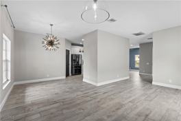 Welcome to Heatherwood Lakes, a gated and family-friendly community in the heart of Cape Coral. This spacious 4BR+Den/2.5BA home sets itself apart with beautifully renovated interiors, upgraded finishes, and an open layout designed for modern living. Inside, you'll find wood-look tile and hardwood floors, designer lighting, and a gourmet kitchen with granite counters, white cabinetry, and stainless-steel appliances. The oversized primary suite features a private flex space with barn doors. Step outside to enjoy lake views from the screened lanai and fenced backyard. Heatherwood Lakes residents enjoy a strong sense of community with a pool, clubhouse, playground, and year-round neighborhood events. Walking distance to Trafalgar Elementary & Middle Schools and close to soccer fields, parks, shopping, and dining.
