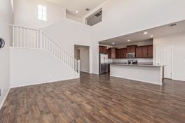 This nearly 3,000 sq ft home offers the perfect blend of space, style, and function. Step inside to a bright, open floorplan with soaring vaulted ceilings and abundant natural light. The gourmet kitchen is a chef’s dream with stainless steel appliances, an oversized island, walk-in pantry, and seamless flow into the dining and living areas—ideal for entertaining. The main floor features a luxurious primary suite with a spa-like ensuite, including dual sinks, a large vanity, and walk-in closet. An additional main-level bedroom with private ensuite, a dedicated office/den, and a powder room for guests provide maximum convenience. Upstairs, a spacious loft serves as a versatile retreat between three generously sized guest bedrooms and additional bathrooms. This home offers comfort, flexibility, and an inviting layout perfect for both everyday living and hosting guests. This home also includes access to a solar system for just $150 per month, significantly reducing your overall electricity costs and providing energy efficiency year-round. San Tan Valley offers a vibrant lifestyle with access to San Tan Mountain Regional Park for hiking and outdoor adventures, family-friendly fun at Schnepf Farms, local flavors at Queen Creek Olive Mill, and a variety of dining and entertainment options just minutes away.