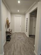 Stylish finishes Enjoy 42" white cabinetry, quartz countertops, and tile flooring throughout the main spaces (carpet-free living except in bedrooms!).