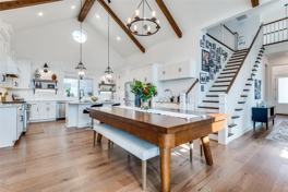 Discover refined elegance in this modern farmhouse built by K Hovnanian Homes! Pride of ownership shines throughout this home as it was thoughtfully designed and curated. This 5-bed, 4.5 bath sits on a large corner lot with beautiful green spaces right across! From the moment you enter, you’re greeted with a dramatic 2-story high foyer that sets the tone for the home’s exceptional scale and beauty. With wide plank wood flooring and 18-foot vaulted ceilings with cedar beams spanning across the kitchen, dining, and living room, this home has an abundance of natural light streaming through all windows, bathing the home with sunlight! The impressive backyard includes the 12-foot 3 panel sliding glass door making it easy to host family gatherings & celebrations. The bright kitchen features upgraded GE Café appliances, a dual oven, hybrid microwave, beautiful Calcattta Oro Quartz countertops a white farmhouse sink and all the storage you need. The master includes a full closet system and a spa-inspired bathroom with an oversized wet-room which includes a rainfall shower and large free standing soaking tub. Conveniently located on the 1st level is an oversized guest-generational bedroom with en-suite bath and a private office with modern barn doors. So many features including a 3-car tandem garage with built-in overhead storage, Wi-Fi enabled garage door opener and laundry room with cabinetry and closet space for all your holiday décor! Upstairs, the home continues to impress with 3 oversized bedrooms, and a game room that provides endless opportunities for family fun. Cat5 (internet) ports are conveniently located throughout the home to make home automation integration effortless. Lewisville ISD schools with Hebron High School located right across the street, minutes away from Willow Bend Mall, shopping dining, Hwy 121 and DNT.