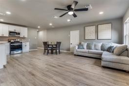 Welcome to this beautifully renovated 4-bedroom, 2-bath home in the heart of Grand Prairie! With fresh modern finishes inside and out, this move-in ready property blends comfort, style, and functionality. Step inside to an open-concept living, dining, and kitchen area featuring wood-look flooring, recessed lighting, and plenty of natural light. The kitchen boasts white shaker cabinets, quartz countertops, stainless steel appliances, and a sleek black faucet, creating a clean and timeless design. The spacious primary suite offers privacy and a fully updated en-suite bath with a walk-in shower, while three additional bedrooms provide flexibility for family, guests, or a home office. Both bathrooms showcase modern tile work and updated fixtures. Outside, you’ll enjoy a large backyard — perfect for entertaining, gardening, or simply relaxing under the shade of mature trees. With its fresh curb appeal, updated systems, and prime location near major highways, shopping, and schools, this home is ready for its new owners.