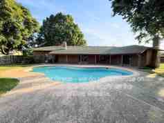 Experience the charm of this Mediterranean-style home, featuring two expansive living areas that both showcase stunning stone fireplaces and authentic beamed ceilings. The luxurious primary suite is a true retreat, complete with a separate tub and shower, along with dual vanities for added convenience. Enjoy hosting in the elegant dining room, while three additional well-appointed bedrooms, two full baths, and a powder room provide ample accommodations for family and guests. The beautifully landscaped yard offers a generous patio that wraps around to the back, creating the perfect oasis with a refreshing swimming pool. With its excellent floor plan, this home is designed for seamless entertaining and lasting memories. Well water. Side building shed and carport on the west side are not included. The home has a garage and driveway on the East side. Tenant has to have a pool company take care of the pool approximately $350 per month.