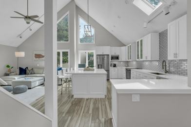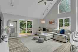 Stylish and spacious, this fully renovated 2-bedroom, 2-full-bath condo lives like a home with the convenience of condo living. Both bedrooms are located on the main level for easy living, while a versatile loft upstairs offers endless possibilities-ideal as a 3rd bedroom, large office, or den. The heart of the home is an open-concept kitchen featuring a generous island, sleek finishes, and abundant natural light flowing into the living and Kitchen areas. Sliders lead to a private deck and the cathedral ceilings allow for windows galore! The thoughtful layout, combined with modern upgrades, creates an inviting atmosphere for both everyday living and entertaining. Additional highlights include a detached garage, airy open floor plan, and the luxury of low-maintenance living-all wrapped in a space that feels truly like home.
