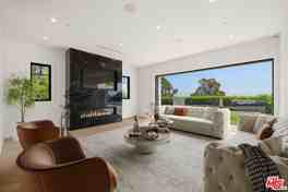 Tucked at the end of a cul-de-sac, this brand-new 10,500 sq. ft. Brentwood estate blends clean modern design with resort-style amenities and sweeping Pacific Ocean and city views. The main level offers formal living and dining rooms, a front office, and an open-concept family room that flows into a chef's kitchen with Wolf appliances, porcelain counters, butler's pantry, and breakfast nook. Walls of glass open to a grassy yard, infinity-edge pool, and outdoor kitchen with BBQ ideal for entertaining. The home features 7 ensuite bedrooms, including a downstairs suite and a spectacular primary retreat with dual vanities, soaking tub, oversized shower, and a private balcony overlooking the ocean. Four additional guest bedrooms each enjoy their own baths on the upper level. A pajama lounge and upstairs laundry add convenience. The lower level is an entertainer's dream with a basement bar, temperature-controlled wine room, private theater, gym, steam room, and flexible space perfect for a second office. Additional highlights include an expansive upper deck with panoramic views, metal roof, elevator, multi-zone HVAC, central vacuum, alarm system, mud/laundry room with dog wash, and 3-car garage. This is a rare opportunity to lease a newly built, private estate combining elegance, function, and breathtaking views.