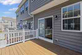 Main level: open living/dining anchored by a designer kitchen with 9' ceilings, quartz countertops, 36" cabinetry, recessed lighting, and a deck directly off the kitchen for easy indoor-outdoor flow.