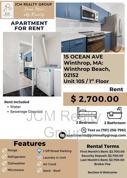 15 Ocean Ave #105-1stFL, Winthrop Town, MA is a 2 bedroom, 2 bathrooms apartment for rent. It is located in the Winthrop Beach neighborhood of Winthrop Town. It has apartment amenities including dishwasher, in-unit laundry, on-site laundry, and assigned parking.