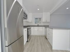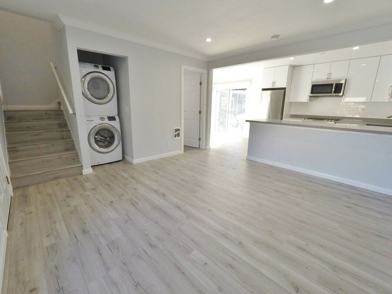 The two-level townhome has 2 bedrooms and 1.5 bathrooms, in addition to a private outdoor patio, a balcony, in-unit washer and dryer machines, a spacious and sunny living room, completely upgraded kitchen with a quartz countertops and new stainless-steel appliances, new dual-pane windows, recessed lighting, and fully renovated bathrooms. The apartment also has on-site parking and an additional in-unit storage closet.