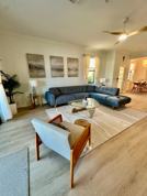 Waterfront Townhome with Resort Amenities — 3 bed, 2.5 bath townhome with extended lanai on the water in a resort-style community. Brand-new modern furniture, turnkey furnished, ready for your seasonal stay. 15 minutes to Gulf beaches, 5 minutes to shopping and dining. Huge resort pool and spa, pickleball, community events, gym, and fitness center.