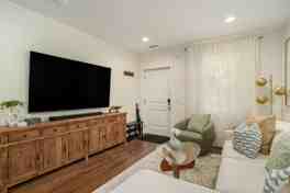 - Cozy living area with Smart TV and cafe table