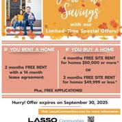 ENJOY SPOOKTACULAR SAVINGS IN OCTOBER! 4 MONTHS FREE SITE RENT & NO APPLICATION FEES*! EXPIRES 10/31/25! ACT FAST! *Restrictions Apply. This thoughtfully designed home offers a smart layout with modern finishes, creating a warm and functional living space. At the heart of the home, the open-concept living room flows seamlessly into the dining area and kitchen, making it perfect for entertaining and family gatherings. The kitchen is a highlight, featuring ample cabinetry, sleek countertops, and a central island with seating that doubles as a workspace or casual dining spot. The primary suite provides a private retreat, complete with a spacious bedroom, large closet, and an en-suite bathroom with double sinks and a walk-in shower. Two additional bedrooms are located on the opposite end of the home, offering privacy and comfort for family members or guests. A second full bathroom serves these rooms conveniently. Additional features include a utility area with washer/dryer connections, modern lighting throughout, and well-placed windows that bring in natural light. Schedule your tour today before it's gone! Disclaimer: Photos shown are staged to highlight layout and features. Furnishings and décor are not included.