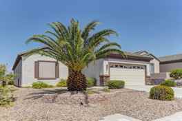 Home features an elevated lot with stunning mountain views and low maintenance landscape with covered patio with motorized patio shades. Exterior has recently been painted. Spacious entry way. Open kitchen to dining and living room, bar height counter space. Kitchen has ample cabinets, island, and solid surface countertops, Recessed lighting. Master bedroom is separate from other bedroom/den and has a large 8x13 walk-in closet.