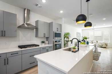 Property Status: Active Introducing Grayson House, blocks from San Antonio's Historic Pearl District and close proximity to Downtown San Antonio and St. Mary's Strip. This three bedroom townhome showcases a sleek, thoughtful design, open layout, and modern finishes. Experience elegant features, including quartz countertops in the kitchen and bathrooms, a smart thermostat for optimal climate control, keypad entries for added security and convenience, and matte black hardware for a chic, modern aesthetic. Tile flooring throughout all bathrooms, attached one-car garages, and expansive walk-in closets with custom-built wood shelving add to the appeal. Enjoy the convenience of kitchen islands perfect for cooking and entertaining, a full-size front load laundry set, high ceilings that enhance the sense of space, a french door fridge, a 52-bottle wine fridge, a gas cooktop, a canopy vent hood, and a wall oven for gourmet cooking. Wood-style flooring throughout the living room, kitchen, and bedrooms completes the elegant design. Experience the vibrant Pearl-area growth with new residential, commercial, and retail developments within walking distance. Grayson House offers a unique blend of convenience, and modern urban living. Make Grayson House your new home and be part of a dynamic, evolving, urban community. Office Phone: (210) 696-9996 Copyright © 2025 San Antonio Board of Realtors®. All rights reserved. All information provided by the listing agent/broker is deemed reliable but is not guaranteed and should be independently verified.