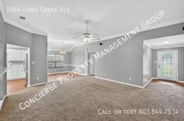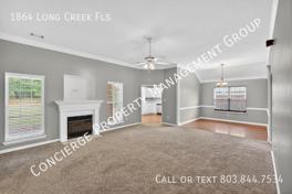 1864 Long Creek Fls is a 4 bedroom, 2 bathrooms apartment for rent. It is located in Grovetown. It has apartment amenities including assigned parking, deck, outdoor space, hardwood floor, in-unit laundry, air conditioning, ceiling fan, on-site laundry, fireplace, carpet, dishwasher, walk-in closets, and microwave. Cats and dogs are allowed, making it a pet-friendly apartment.