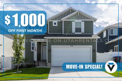 4712 E Rustic Ranch Way is a 3 bedroom, 2 bathrooms apartment for rent. It is located in Eagle Mountain. It has apartment amenities including dishwasher, in-unit laundry, walk-in closets, fireplace, outdoor space, on-site laundry, carpet, and high ceilings.
