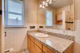 Spanning the entire second floor of a charming duplex, this bright two-bedroom home blends vintage architecture with modern comforts. The chef's kitchen features granite slab countertops, a built-in cooktop, dishwasher, gourmet wall oven, microwave, and garbage disposal. Hardwood floors flow through the living room and dining room; both bedrooms are carpeted, with the second bedroom situated in the roofline for added character. A vintage chandelier highlights the formal dining area. The bathroom includes marble tile, a granite vanity, and a full tub. Covered front porch access is shared with the first-floor unit, and there's a shared fenced backyard. Optional whole-house evaporative cooler available as an add-on for summer comfort.