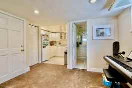 This cozy one-bedroom basement apartment offers comfort and privacy with its own separate entrance in a classic Denver duplex. The living room features durable flooring and an open layout leading into the kitchen, which includes updated countertops, a stove, refrigerator, microwave, and garbage disposal. The bedroom offers a quiet retreat with ample closet space, and the bathroom includes a full tub and modern vanity. Shared access to the covered front porch and fenced backyard provides extra outdoor living space.
