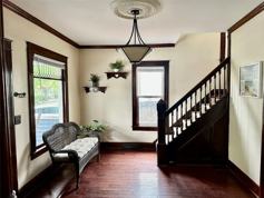Spacious, updated single-family home with quick access to shopping, parks, and transit. This beautifully maintained three-story residence features hardwood floors throughout, a modern kitchen with solid-surface counters, stainless steel appliances, and plenty of cabinet space. The main floor includes a convenient half bath. Upstairs are three spacious bedrooms and an updated full bath. The fully finished third level is perfect as a bedroom, office, or bonus room. The basement offers extra storage and a workshop. Enjoy the new Trex front porch, fenced patio, detached garage, and yard. Located minutes from downtown Binghamton in the Northside, this home provides generous living space, modern amenities, and a convenient location, ideal for those seeking comfort and value.