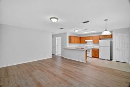 Beautifully updated 2-bedroom, 2-bath home with a one-car garage and a driveway that will easily fit two more cars. Freshly painted with new vinyl flooring throughout. Features washer and dryer hookups in the garage and an open-concept living room and kitchen. Pets ok with a fee. 2 Max. Screening required.