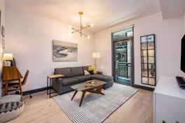 Fully furnished 1BR/1BA condo at The Gadsden in Downtown Charleston. Modern furnishings, open floor plan with great natural light, stainless steel appliances, large kitchen island, queen bed, en-suite bath with walk-in shower & dual vanities, walk-in closet, washer/dryer, and private balcony.