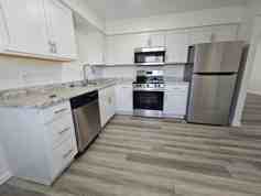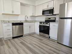 Fully remodeled kitchen with modern cabinets, microwave, dishwasher, and sleek finishes