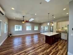 Upstairs Unit: 3 bedrooms and 2 full baths with (2) split unit A/C and 2 CAR GARAGE! Full kitchen features stainless steel appliances, dishwasher and microwave. Stove and hot water heater run on propane. In-unit washer and dryer for added convenience. Multiple skylights through for plenty of natural light. Fans and window coverings in every bedroom.