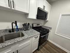 Move right in to this spacious, fully furnished 2-bedroom, 1-bath unit designed for comfort and convenience. The living room features a couch and 65” smart TV, perfect for relaxing. A dedicated dining area with table and chairs flows into a full kitchen stocked with cookware and essentials, making meal prep easy.