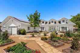 Enjoy panoramic views from the expansive 120-foot concrete patio, perfect for entertaining or relaxing under the stars. Modern systems include owned solar with Tesla Powerwall backup, a private well with 5,000-gallon storage, whole-house fan, indoor fire sprinklers, and hot water recirculating system. The property also features a fully fenced front garden with 24 raised beds, a chicken coop, and a large orchard with over 100 mature fruit trees. Parking includes a three-ca