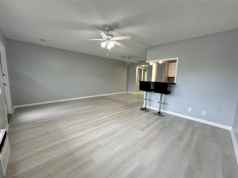 Beautifully Renovated 1-Bed, 1.5-Bath First-Floor Condo in the Resort-Style 55+ Community of Century Village. This Bright and Spacious Condo features New Laminate Wood Floors in Living area and Bedroom, Tile in the Kitchen, Brand New Open Kitchen with Shaker Cabinets, New SS Appliances, Granite Counters, Fresh Paint Throughout, New Light Fixtures, New Batrooms, New A/C, New Water Heater, New Hurricane Impact Patio Enclosure with Access Door to the Back Yard. Truly a Move-in Ready Unit. Rentable Building from Day 1. Community Offers Courtesy Bus Shuttle, Clubhouse, with Theater, Gane room, Billiards, Cafe, Indoor Pool, Arts and Crafts, Gym, Pickle ball, Heated Pool, Sauna, Steam Room, Walk/Jog Trail, 24 Hours Security, Gated with Guards on Site. Water, Cable, Trash, Included.