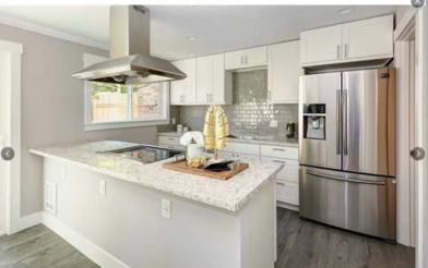 The bright and open layout features oak hardwood floors throughout, a modern kitchen with quartz countertops and top-of-the-line stainless steel appliances, plus luxury bathrooms on both levels.